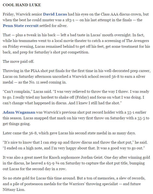 - David Lucas in Track & Field senior spotlight (Lancaster Online by Tim Gross)