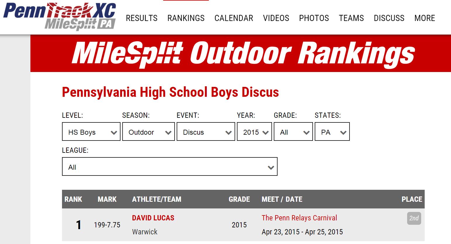 - Video of Lucas Winning 192-3 Discus Throw at Lancaster-Lebanon Championships 2015