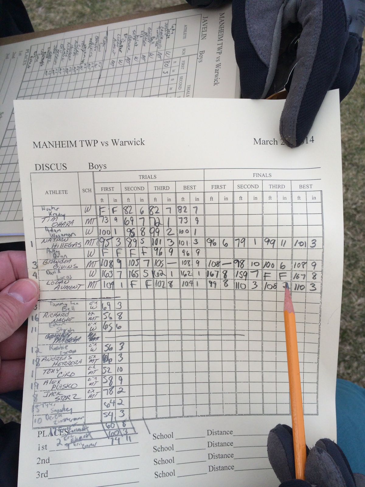Especially impressive was David’s series of throws (see picture of official’s score card). He is becoming a consistent thrower and continuing to better his marks consistently – makes following his progress quite enjoyable!