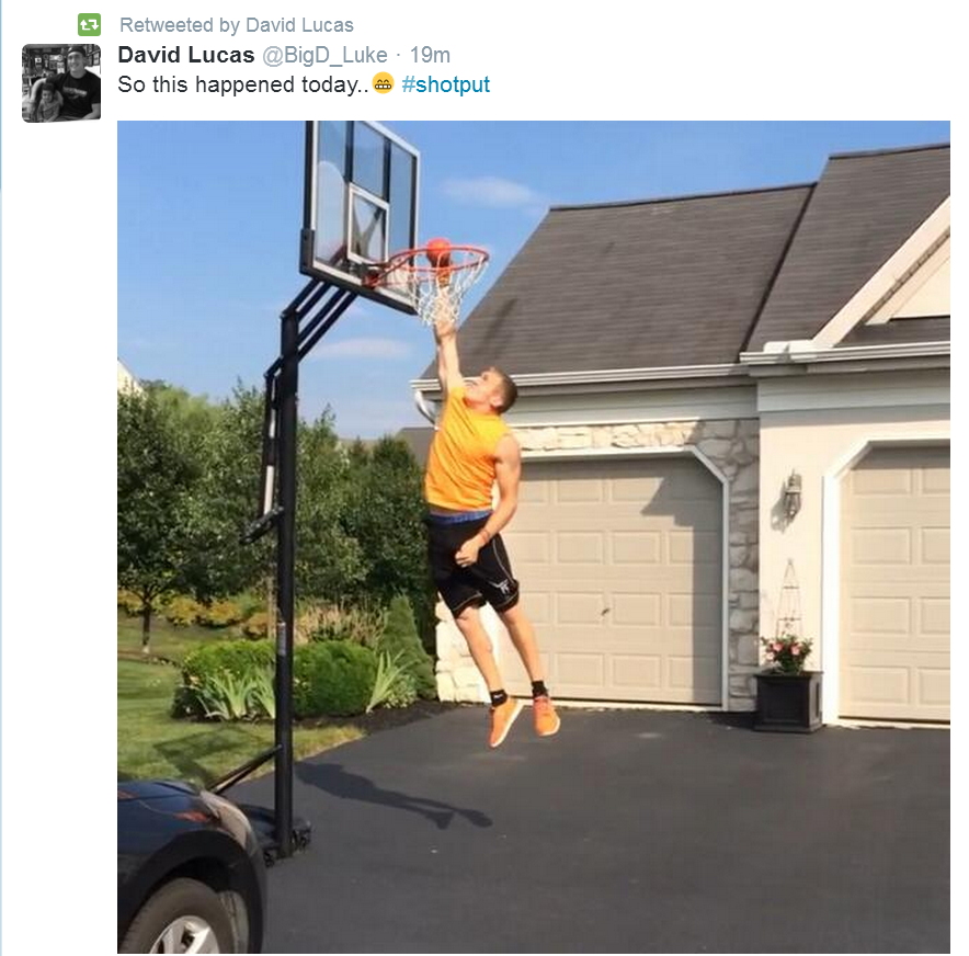 dunking a 12 lb shot put